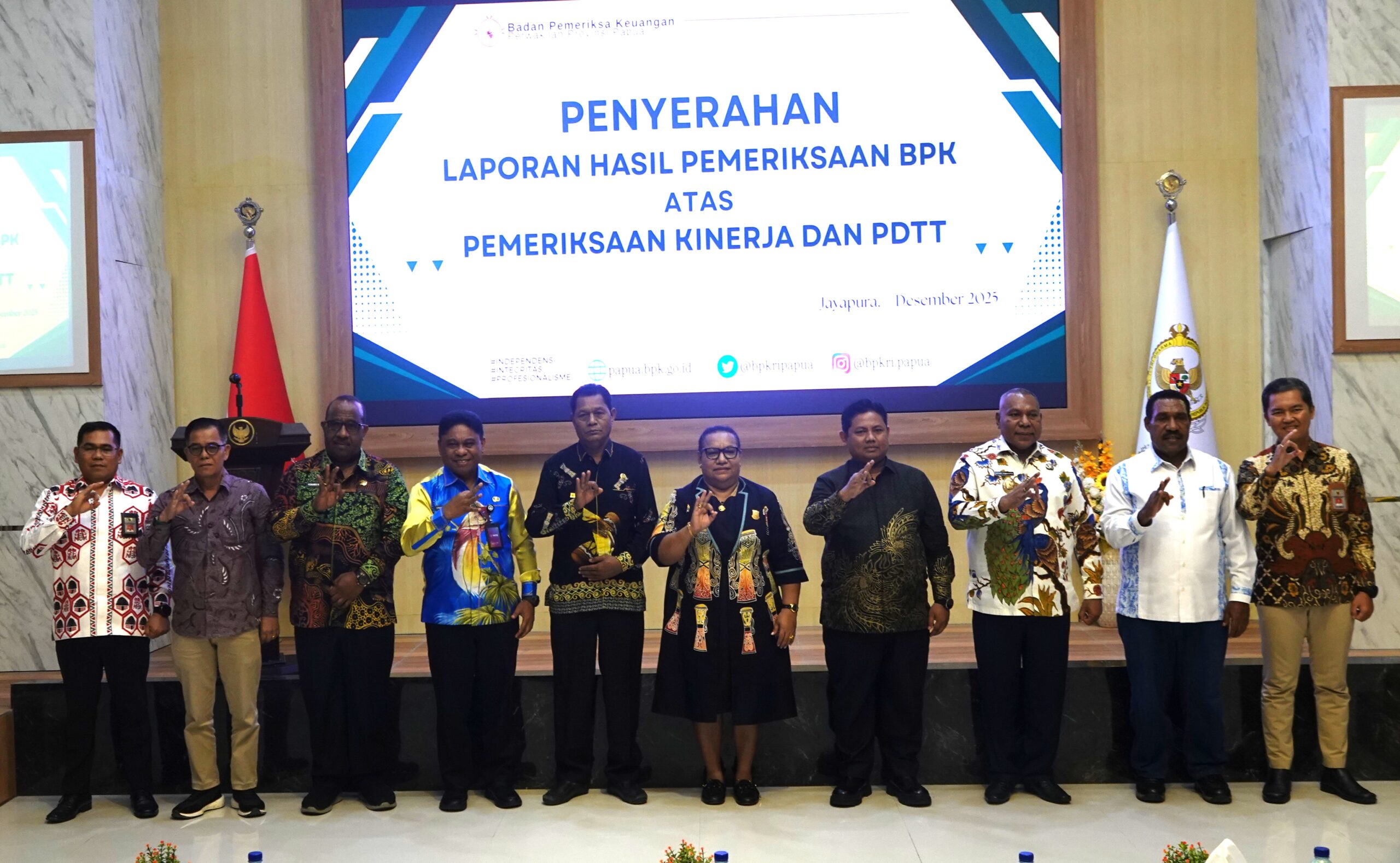 Jayapura – Wakil ketua I DPR Papua, Herlin Beatrix M Monim.SE.MM Menghadir acara Penyerahan Laporan Hasil Pemeriksaan ( LHP)BPK RI atas Pemeriksaan Kinerja dan Pemeriksaan Dengan Tujuan Tertentu ( PDTT) di Kantor BPK RI Perwakilan Provinsi Papua pada hari Kamis tanggal 15 Januari 2026.