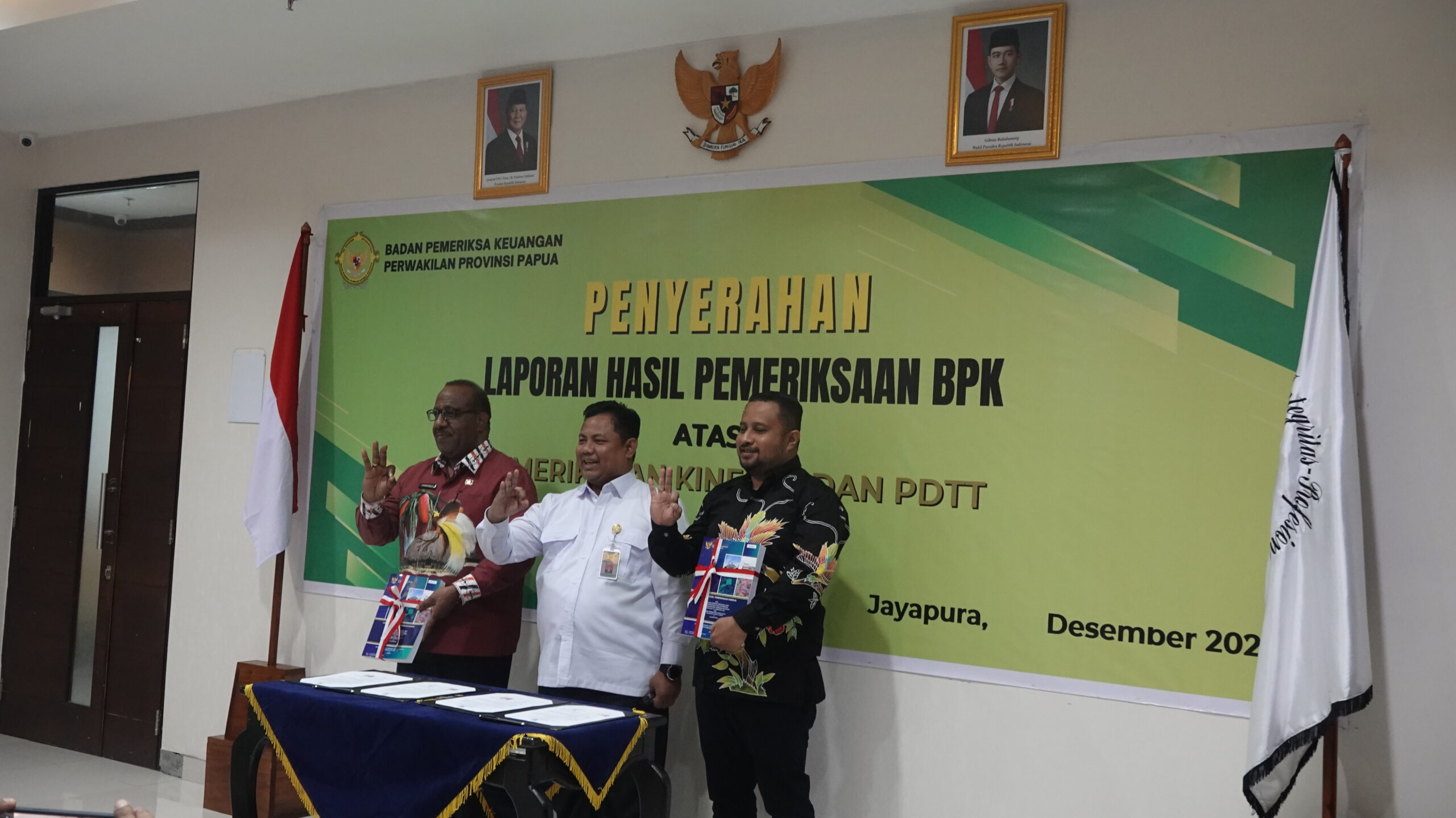 Jayapura, Badan Pemeriksa Keuangan Republik Indonesia ( BPK RI )Perwakilan Provinsi Papua menyerahkan  Laporan Hasil  Pemeriksaan (LHP) Kinerja atas Efektivitas  Kegiatan Operasional Bank Papua kepada Pemerintah Provinsi Papua, DPR Papua serta Jajaran manajemen Bank Papua.