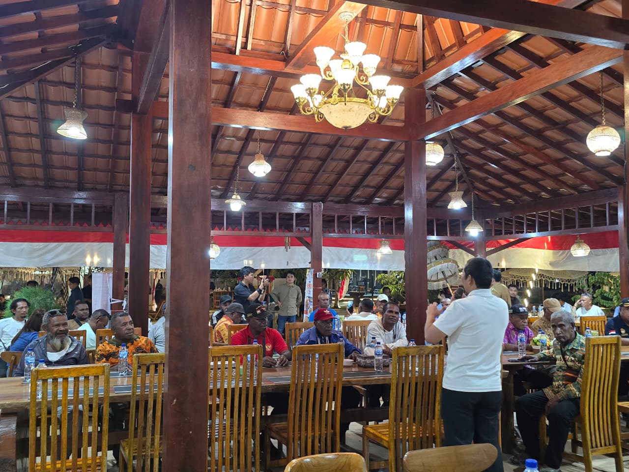 Jayapura, Penjabat Gubernur Papua, Dr.Drs. Agus Fatoni. M.Si, menghadiri pertemuan bersama Ondoafi dan Para Tokoh Adat di Provinsi Papua, Kegiatan ini berlangsung di D’ Jimbaran Resto, Jayapura Papua, Selasa 12 Agustus 2025. Selain Tokoh Adat di Provinsi Papua, Pertemuan ini juga turut dihadiri oleh Ketua Majelis Rakyat Papua (MRP) Nerlince Wamuar, Kabinda Papua Brigjen TNI Bayu Sudarmanto, Kepala OPD dan Pimpinan Forkopimda lainnya.