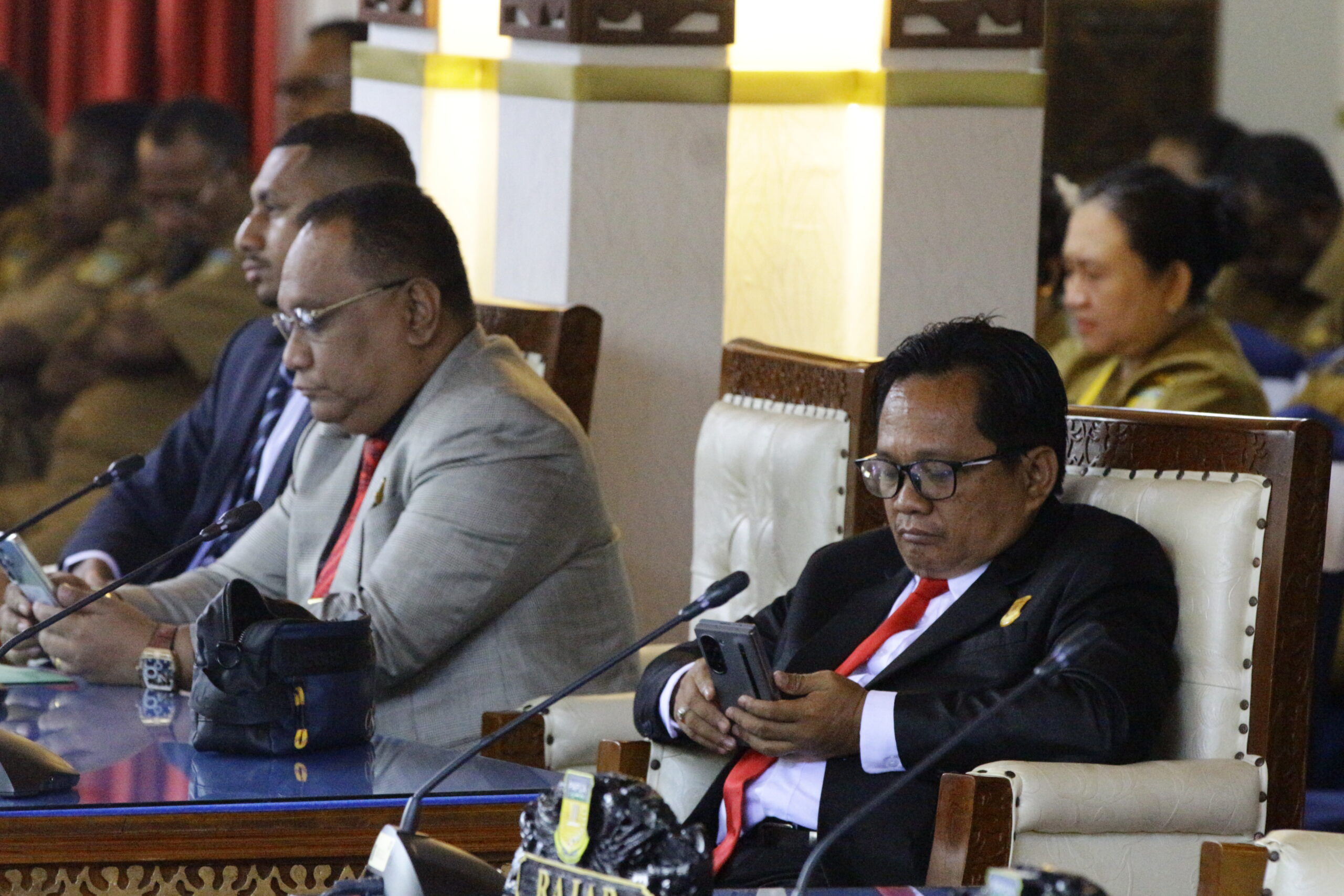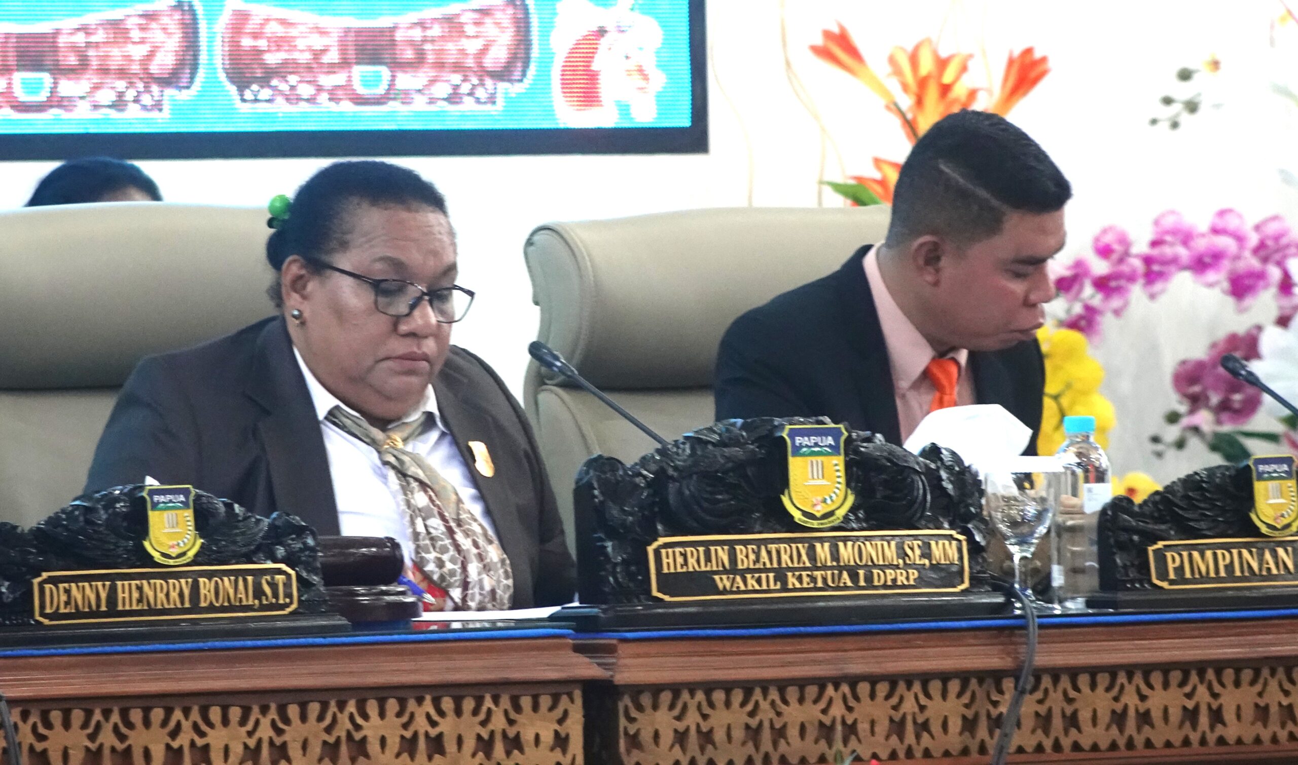 Rapat Paripurna ke II dalam rangka Penyampaian Pandangan Umum Fraksi – Fraksi terhadap Raperdasi tentang Pertanggung Jawaban Pelaksanaan APBD Tahun Anggaran 2024, kembali digelar di ruang sidang Gedung DPR Papua. Rapat Paripurna tersebut di Pimpin oleh Wakil Ketua III DPR Papua, H. Supriadi Laling. S. AP di dampingi Wakil Ketua I DPR Papua, Herlin Beatrix M. Monim. SE. MM.