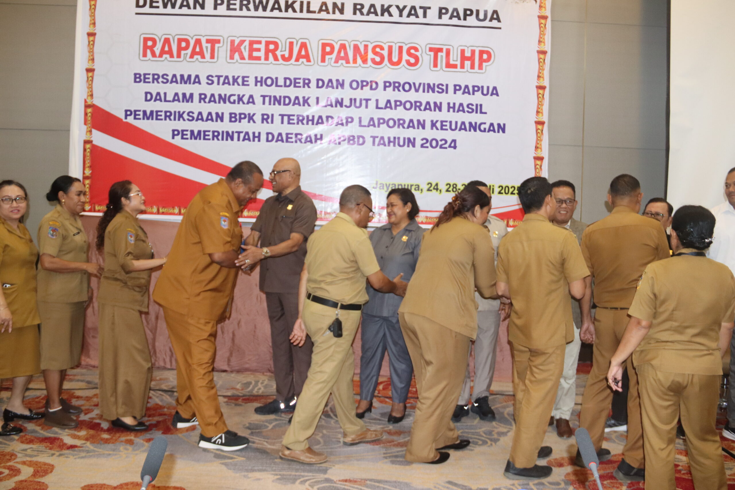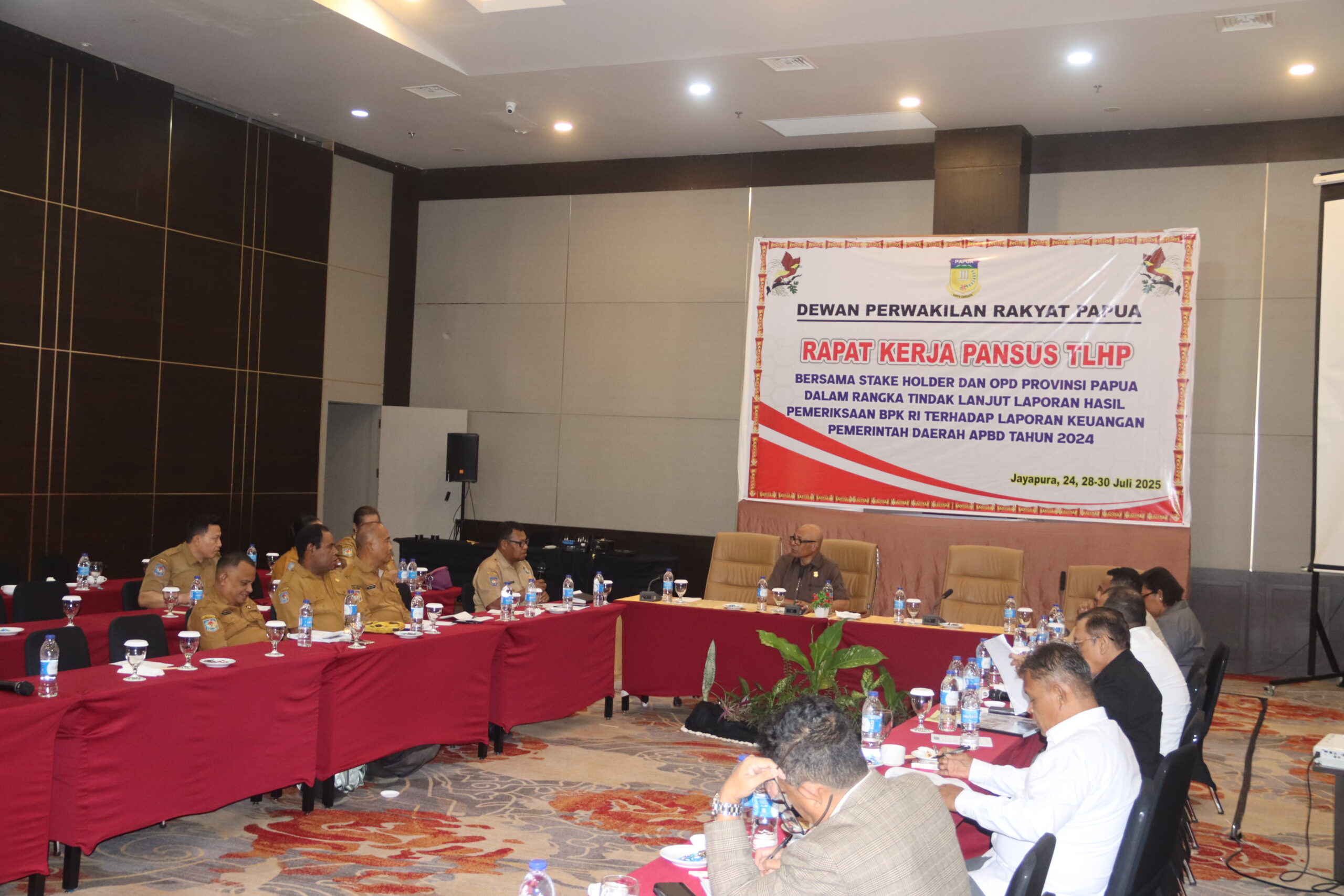 Maka pada hari ini, Senin tanggal 28 Juli 2025, Pansus Tindak Lanjut Hasil Pemeriksaan, DPR Papua,melakukan Rapat Kerja bersama Stake Holder dan OPD dilingkungan Pemerintah Provinsi Papua, dalam rangka menindak Lanjut Laporan Hasil Pemeriksaan Badan Pemeriksa Keuangan Republik Indonesia terhadap Laporan Keuangan Pemerintah Daerah APBD Tahun 2024.